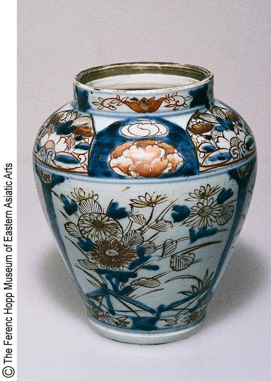 | rdfs:label | "色絵柘榴菊牡丹文蓋付壷(蓋欠)" |