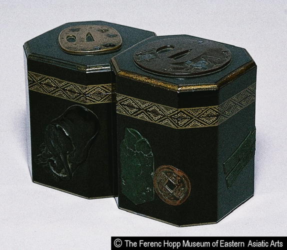 | schema:name 2 | "Tea utensil box with design of sword guards and writing utensils" @en | ||||